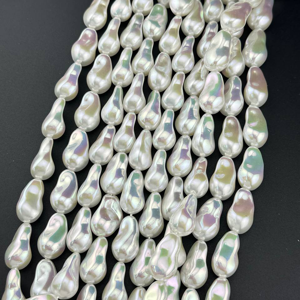 Естественные перлы отличается разнообразием цветов, величин и форм, от классического белого до персикового, золотистого и даже черного цветов, от шарообразной до овальной или дисковидной формы. Популярны и так называемые барочные перлы причудливой формы, которые могут напоминать лепесток, бабочку или крест, что позволяет жемчуг бусины купить и создавать необычные авторские украшения.