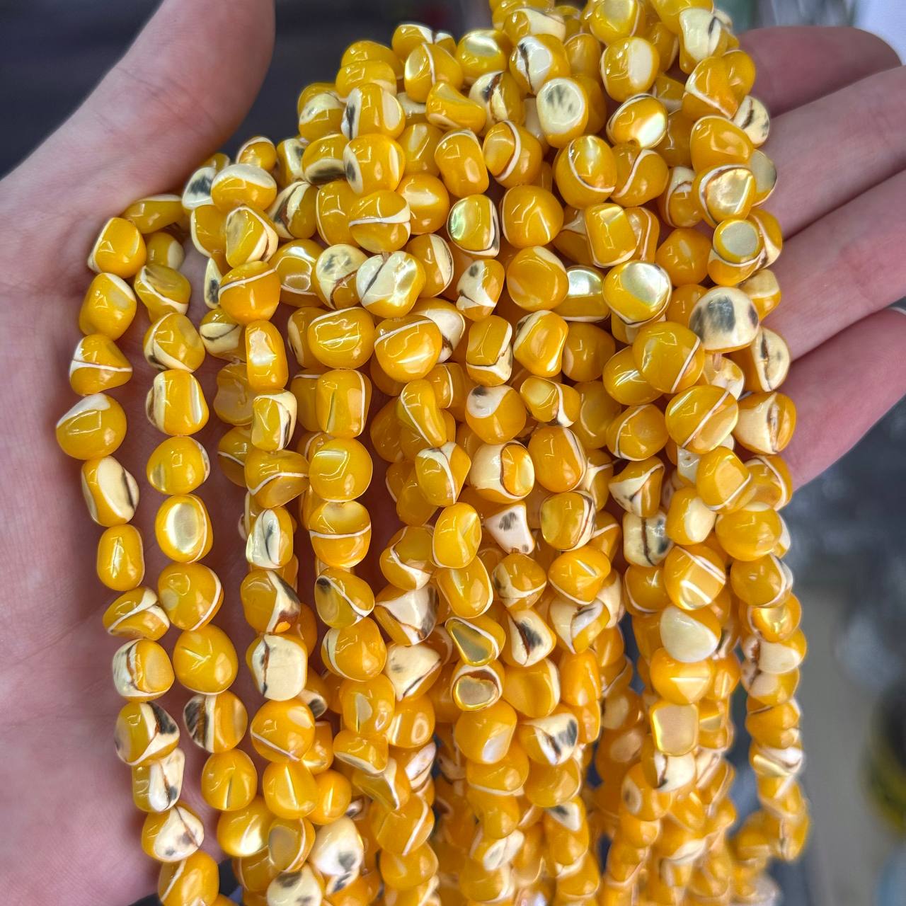 Перламутр желтый средний размер бусин 6*8мм натуральный камень в Минске