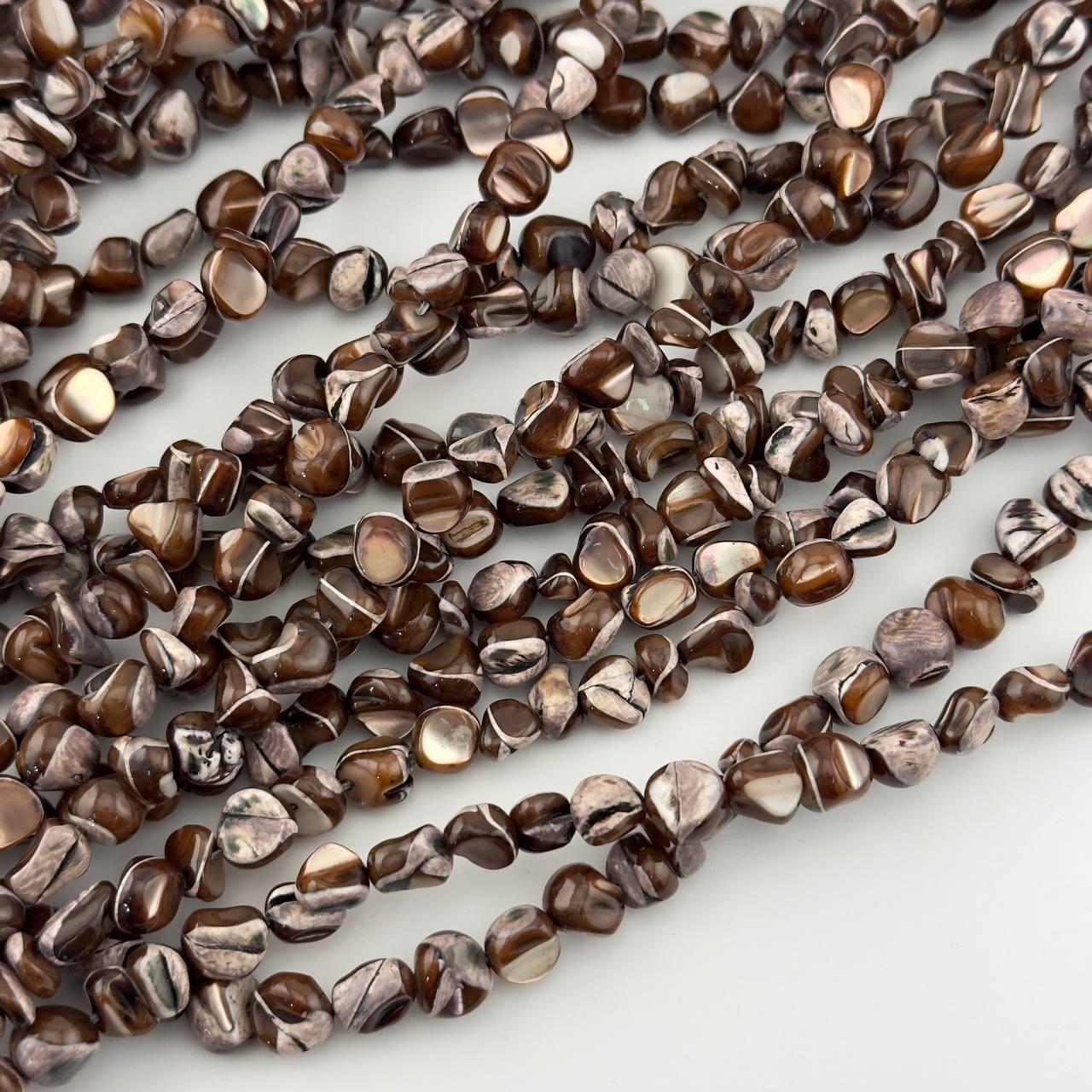 Перламутр коричневый средний размер бусин 6*8мм натуральный камень в Минске