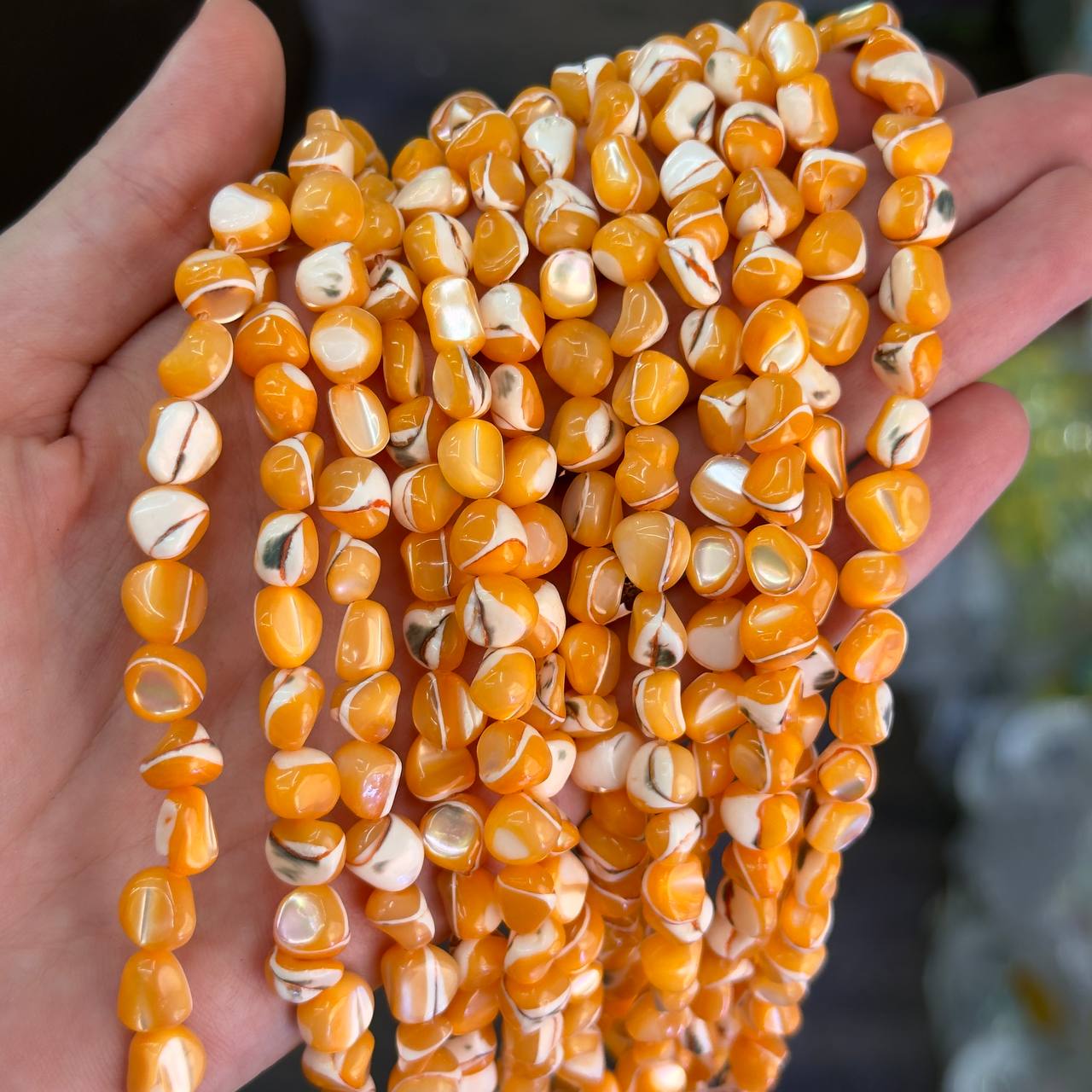 Перламутр оранжевый средний размер бусин 6*8мм натуральный камень в Минске